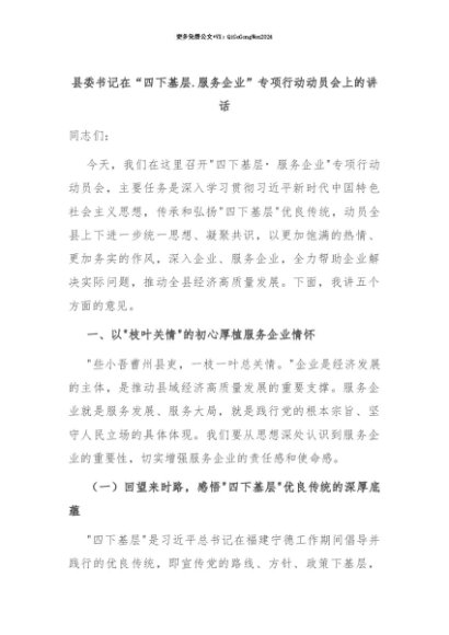 【七哥公文】2025年:【七哥公文】县委书记在“四下基层.服务企业”专项行动动员会上的讲话+更多免费公文+VX:QiGeGongWen2024+更多免费公文+VX:QiGeGongWen2024