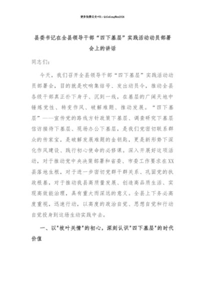 【七哥公文】2025年:【七哥公文】县委书记在全县领导干部“四下基层”实践活动动员部署会上的讲话+更多免费公文+VX:QiGeGongWen2024+更多免费公文+VX:QiGeGongWen2024