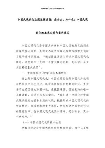 【七哥公文】2025年:【七哥公文】中国式现代化主题党课讲稿:是什么、为什么:中国式现代化的基本内涵与重大意义+更多免费公文+VX:QiGeGongWen2024+更多免费公文+VX:QiGeGongWen2024
