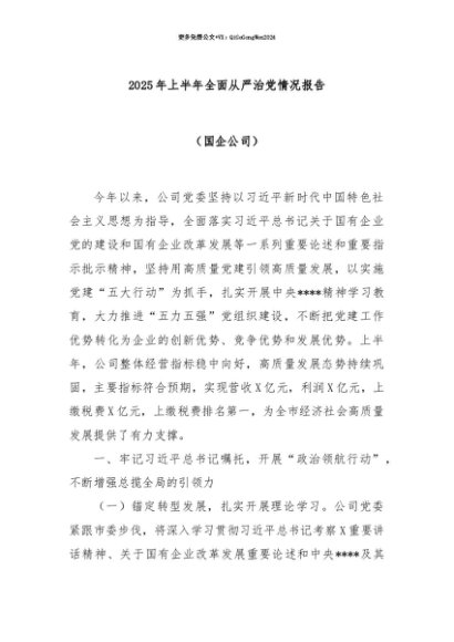 【七哥公文】2025年:【七哥公文】2025年上半年全面从严治党情况报告(国企公司)+更多免费公文+VX:QiGeGongWen2024+更多免费公文+VX:QiGeGongWen2024