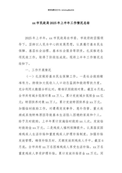 【七哥公文】2025年:【七哥公文】xx市民政局2025年上半年工作情况总结+更多免费公文+VX:QiGeGongWen2024+更多免费公文+VX:QiGeGongWen2024