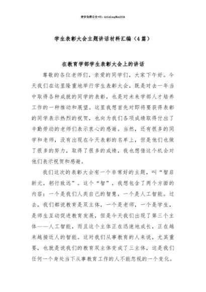 【七哥公文】2025年:【七哥公文】(4篇)学生表彰大会主题讲话材料汇编+更多免费公文+VX:QiGeGongWen2024+更多免费公文+VX:QiGeGongWen2024