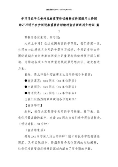 【七哥公文】2025年:【七哥公文】学习习近平在贵州视察重要讲话精神宣讲团通用主持词+更多免费公文+VX:QiGeGongWen2024+更多免费公文+VX:QiGeGongWen2024