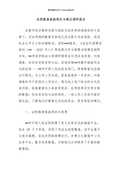 【七哥公文】2025年:【七哥公文】法院数智赋能现状与建议调研报告+更多免费公文+VX:QiGeGongWen2024+更多免费公文+VX:QiGeGongWen2024