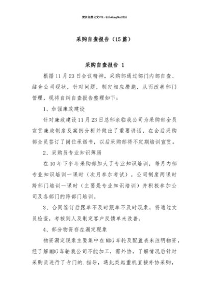 【七哥公文】2025年:【七哥公文】(15篇)采购自查报告+更多免费公文+VX:QiGeGongWen2024+更多免费公文+VX:QiGeGongWen2024
