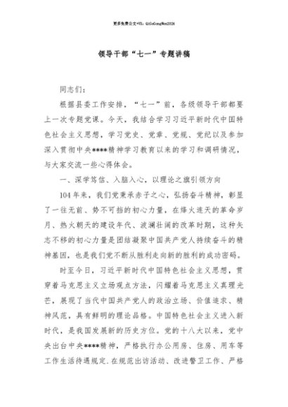 【七哥公文】2025年:【七哥公文】领导干部“七一”专题讲稿+更多免费公文+VX:QiGeGongWen2024+更多免费公文+VX:QiGeGongWen2024
