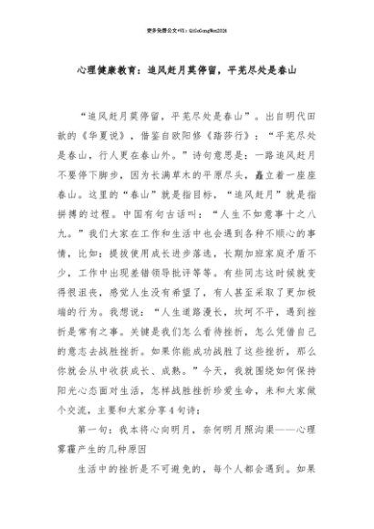 【七哥公文】2025年:【七哥公文】心理健康教育:追风赶月莫停留,平芜尽处是春山+更多免费公文+VX:QiGeGongWen2024+更多免费公文+VX:QiGeGongWen2024