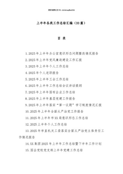 【七哥公文】2025年:【七哥公文】(33篇)上半年各类工作总结汇编+更多免费公文+VX:QiGeGongWen2024+更多免费公文+VX:QiGeGongWen2024