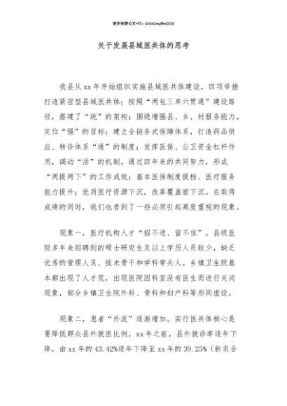 【七哥公文】2025年:【七哥公文】关于发展县域医共体的思考+更多免费公文+VX:QiGeGongWen2024+更多免费公文+VX:QiGeGongWen2024
