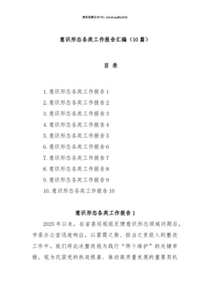 【七哥公文】2025年:【七哥公文】(10篇)意识形态各类工作报告汇编+更多免费公文+VX:QiGeGongWen2024+更多免费公文+VX:QiGeGongWen2024