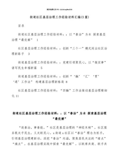 【七哥公文】2025年:【七哥公文】(5篇)街道社区基层治理工作经验材料汇编+更多免费公文+VX:QiGeGongWen2024+更多免费公文+VX:QiGeGongWen2024