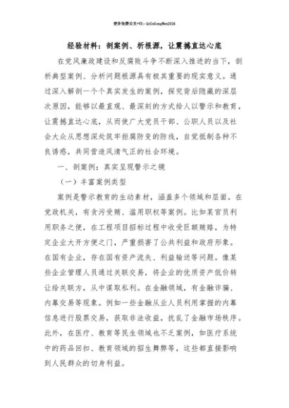 【七哥公文】2025年:【七哥公文】经验材料:剖案例、析根源,让震撼直达心底+更多免费公文+VX:QiGeGongWen2024+更多免费公文+VX:QiGeGongWen2024
