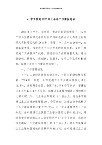 【七哥公文】2025年:【七哥公文】xx市工信局2025年上半年工作情况总结+更多免费公文+VX:QiGeGongWen2024+更多免费公文+VX:QiGeGongWen2024