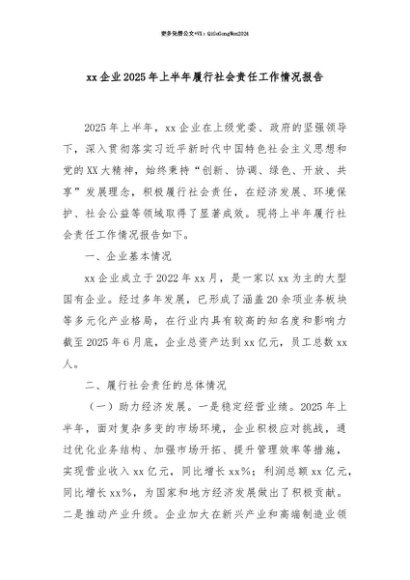 【七哥公文】2025年:【七哥公文】xx企业2025年上半年履行社会责任工作情况报告+更多免费公文+VX:QiGeGongWen2024+更多免费公文+VX:QiGeGongWen2024