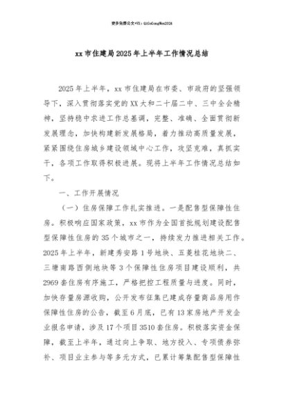 【七哥公文】2025年:【七哥公文】xx市住建局2025年上半年工作情况总结+更多免费公文+VX:QiGeGongWen2024+更多免费公文+VX:QiGeGongWen2024