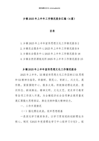 【七哥公文】2025年:【七哥公文】(4篇)乡镇2025年上半年工作情况报告汇编+更多免费公文+VX:QiGeGongWen2024+更多免费公文+VX:QiGeGongWen2024