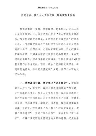 【七哥公文】2025年:【七哥公文】交流发言:提升人大工作质效,服务高质量发展+更多免费公文+VX:QiGeGongWen2024+更多免费公文+VX:QiGeGongWen2024
