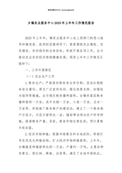 【七哥公文】2025年:【七哥公文】乡镇农业服务中心2025年上半年工作情况报告+更多免费公文+VX:QiGeGongWen2024+更多免费公文+VX:QiGeGongWen2024