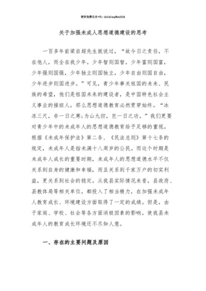 【七哥公文】2025年:【七哥公文】关于加强未成人思想道德建设的思考+更多免费公文+VX:QiGeGongWen2024+更多免费公文+VX:QiGeGongWen2024