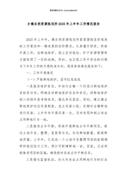 【七哥公文】2025年:【七哥公文】乡镇自然资源规划所2025年上半年工作情况报告+更多免费公文+VX:QiGeGongWen2024+更多免费公文+VX:QiGeGongWen2024