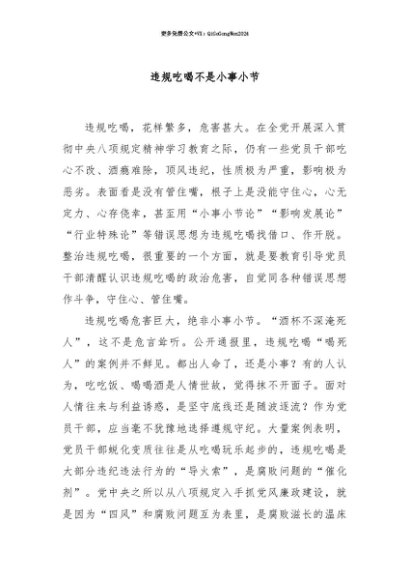 【七哥公文】2025年:【七哥公文】违规吃喝不是小事小节+更多免费公文+VX:QiGeGongWen2024+更多免费公文+VX:QiGeGongWen2024