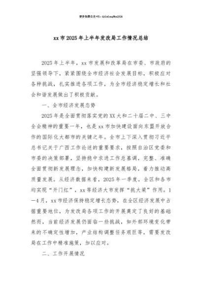 【七哥公文】2025年:【七哥公文】xx市2025年上半年发改局工作情况总结+更多免费公文+VX:QiGeGongWen2024+更多免费公文+VX:QiGeGongWen2024