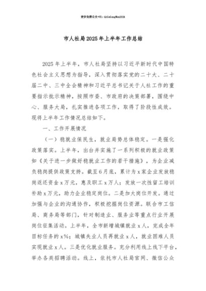【七哥公文】2025年:【七哥公文】市人社局2025年上半年工作总结+更多免费公文+VX:QiGeGongWen2024+更多免费公文+VX:QiGeGongWen2024