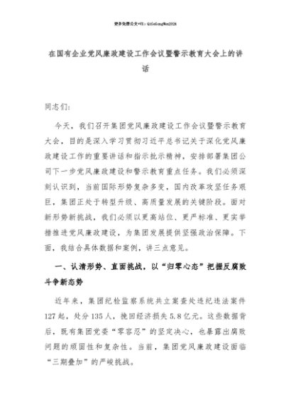 【七哥公文】2025年:【七哥公文】在国有企业党风廉政建设工作会议暨警示教育大会上的讲话+更多免费公文+VX:QiGeGongWen2024+更多免费公文+VX:QiGeGongWen2024