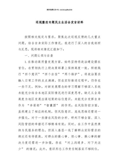【七哥公文】2025年:【七哥公文】巡视整改专题民主生活会发言材料+更多免费公文+VX:QiGeGongWen2024+更多免费公文+VX:QiGeGongWen2024