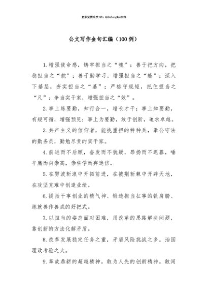 【七哥公文】2025年:【七哥公文】公文写作金句汇编(100例)+更多免费公文+VX:QiGeGongWen2024+更多免费公文+VX:QiGeGongWen2024