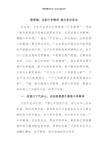 【七哥公文】2025年:【七哥公文】授课稿:发扬斗争精神 强化责任担当+更多免费公文+VX:QiGeGongWen2024+更多免费公文+VX:QiGeGongWen2024