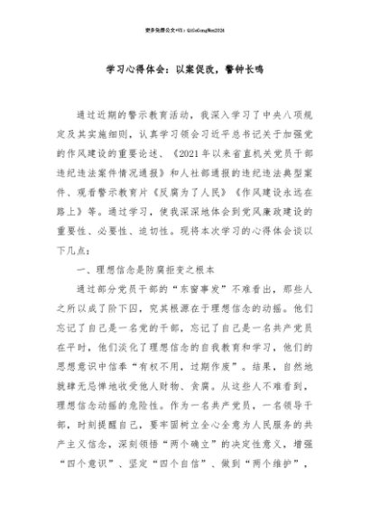【七哥公文】2025年:【七哥公文】学习心得体会:以案促改,警钟长鸣+更多免费公文+VX:QiGeGongWen2024+更多免费公文+VX:QiGeGongWen2024