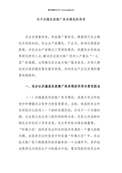 【七哥公文】2025年:【七哥公文】关于加强农技推广体系建设的思考+更多免费公文+VX:QiGeGongWen2024+更多免费公文+VX:QiGeGongWen2024