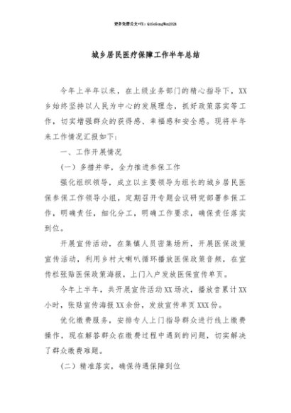 【七哥公文】2025年:【七哥公文】城乡居民医疗保障工作半年总结+更多免费公文+VX:QiGeGongWen2024+更多免费公文+VX:QiGeGongWen2024
