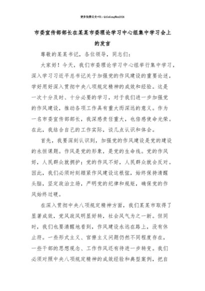 【七哥公文】2025年:【七哥公文】市委宣传部部长在某某市委理论学习中心组集中学习会上的发言+更多免费公文+VX:QiGeGongWen2024+更多免费公文+VX:QiGeGongWen2024