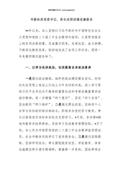 【七哥公文】2025年:【七哥公文】市教体局党委书记、局长述职述德述廉报告+更多免费公文+VX:QiGeGongWen2024+更多免费公文+VX:QiGeGongWen2024