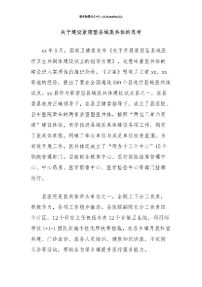 【七哥公文】2025年:【七哥公文】关于建设紧密型县域医共体的思考+更多免费公文+VX:QiGeGongWen2024+更多免费公文+VX:QiGeGongWen2024