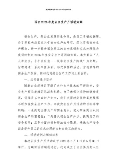 【七哥公文】2025年:【七哥公文】国企2025年度安全生产月活动方案+更多免费公文+VX:QiGeGongWen2024+更多免费公文+VX:QiGeGongWen2024