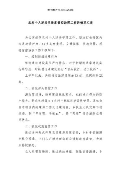 【七哥公文】2025年:【七哥公文】农村个人建房及违章管控治理工作的情况汇报+更多免费公文+VX:QiGeGongWen2024+更多免费公文+VX:QiGeGongWen2024