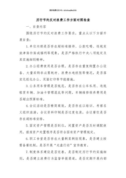 【七哥公文】2025年:【七哥公文】厉行节约反对浪费工作方面对照检查+更多免费公文+VX:QiGeGongWen2024+更多免费公文+VX:QiGeGongWen2024