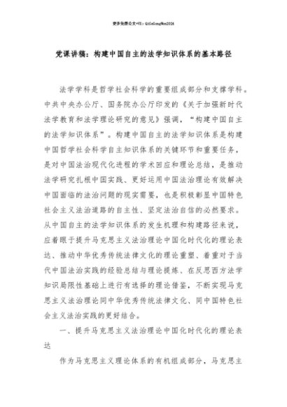 【七哥公文】2025年:【七哥公文】党课讲稿:构建中国自主的法学知识体系的基本路径+更多免费公文+VX:QiGeGongWen2024+更多免费公文+VX:QiGeGongWen2024