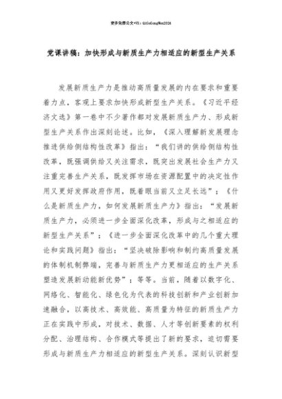 【七哥公文】2025年:【七哥公文】党课讲稿:加快形成与新质生产力相适应的新型生产关系+更多免费公文+VX:QiGeGongWen2024+更多免费公文+VX:QiGeGongWen2024