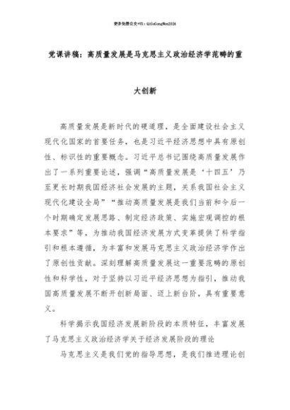 【七哥公文】2025年:【七哥公文】党课讲稿:高质量发展是马克思主义政治经济学范畴的重大创新+更多免费公文+VX:QiGeGongWen2024+更多免费公文+VX:QiGeGongWen2024