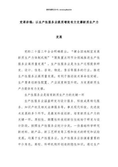 【七哥公文】2025年:【七哥公文】党课讲稿:以生产性服务业提质增效有力支撑新质生产力发展+更多免费公文+VX:QiGeGongWen2024+更多免费公文+VX:QiGeGongWen2024