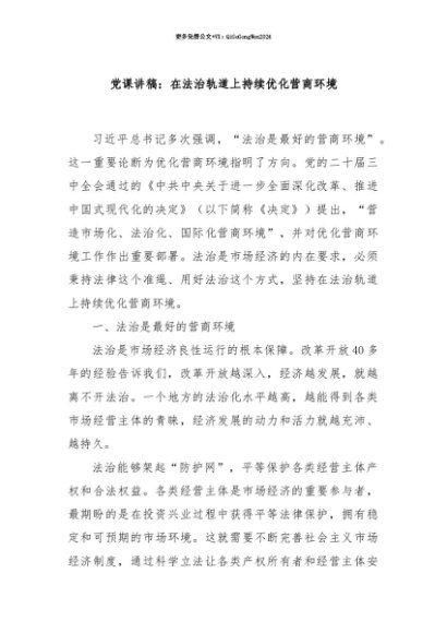 【七哥公文】2025年:【七哥公文】党课讲稿:在法治轨道上持续优化营商环境+更多免费公文+VX:QiGeGongWen2024+更多免费公文+VX:QiGeGongWen2024