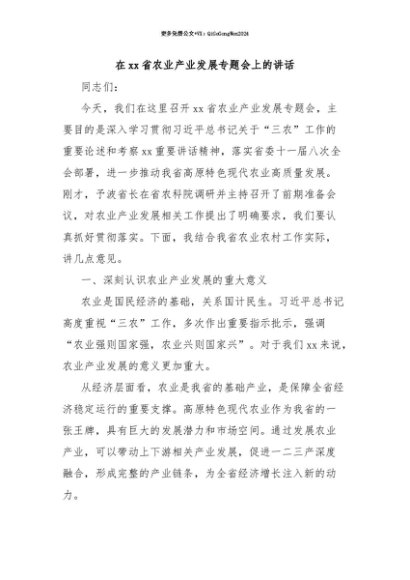 【七哥公文】2025年:【七哥公文】在xx省农业产业发展专题会上的讲话+更多免费公文+VX:QiGeGongWen2024+更多免费公文+VX:QiGeGongWen2024