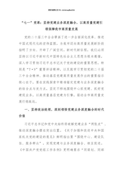 【七哥公文】2025年:【七哥公文】“七一”党课:坚持党建业务深度融合,以高质量党建引领保障我市高质量发展+更多免费公文+VX:QiGeGongWen2024+更多免费公文+VX:QiGeGongWen2024