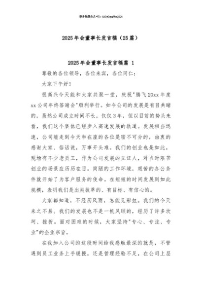 【七哥公文】2025年:【七哥公文】(25篇)2025年会董事长发言稿+更多免费公文+VX:QiGeGongWen2024+更多免费公文+VX:QiGeGongWen2024
