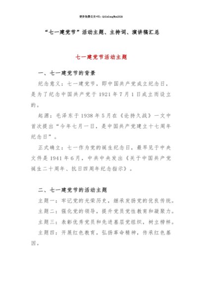 【七哥公文】2025年:【七哥公文】“七一建党节”活动主题、主持词、演讲稿汇总+更多免费公文+VX:QiGeGongWen2024+更多免费公文+VX:QiGeGongWen2024