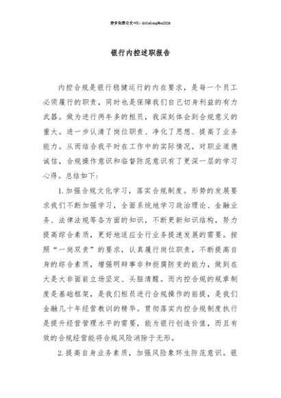 【七哥公文】2025年:【七哥公文】银行内控述职报告+更多免费公文+VX:QiGeGongWen2024+更多免费公文+VX:QiGeGongWen2024
